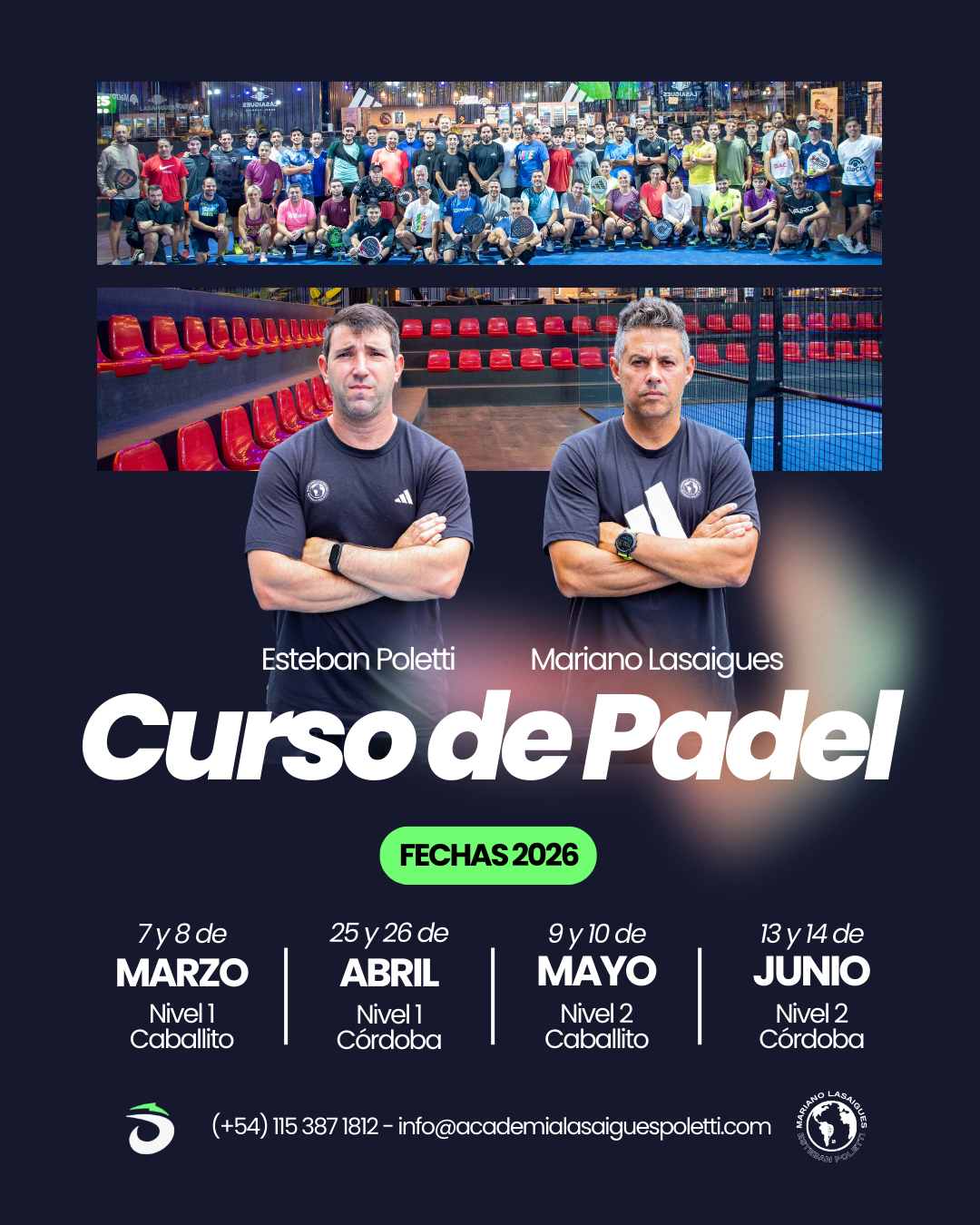 Si te gustaría realizar alguno de nuestros cursos o llevar alguno de nuestros servicios a tu club de padel, dejanos tu mensaje.